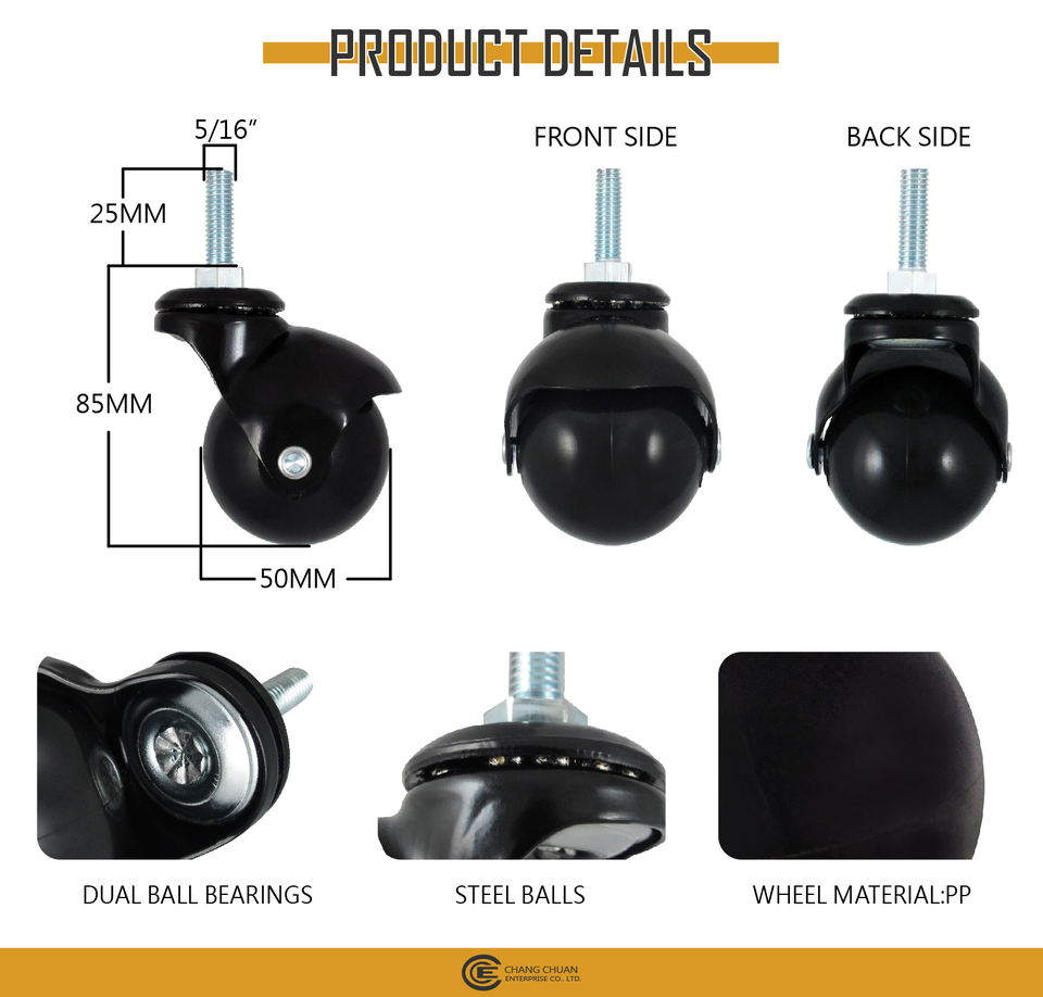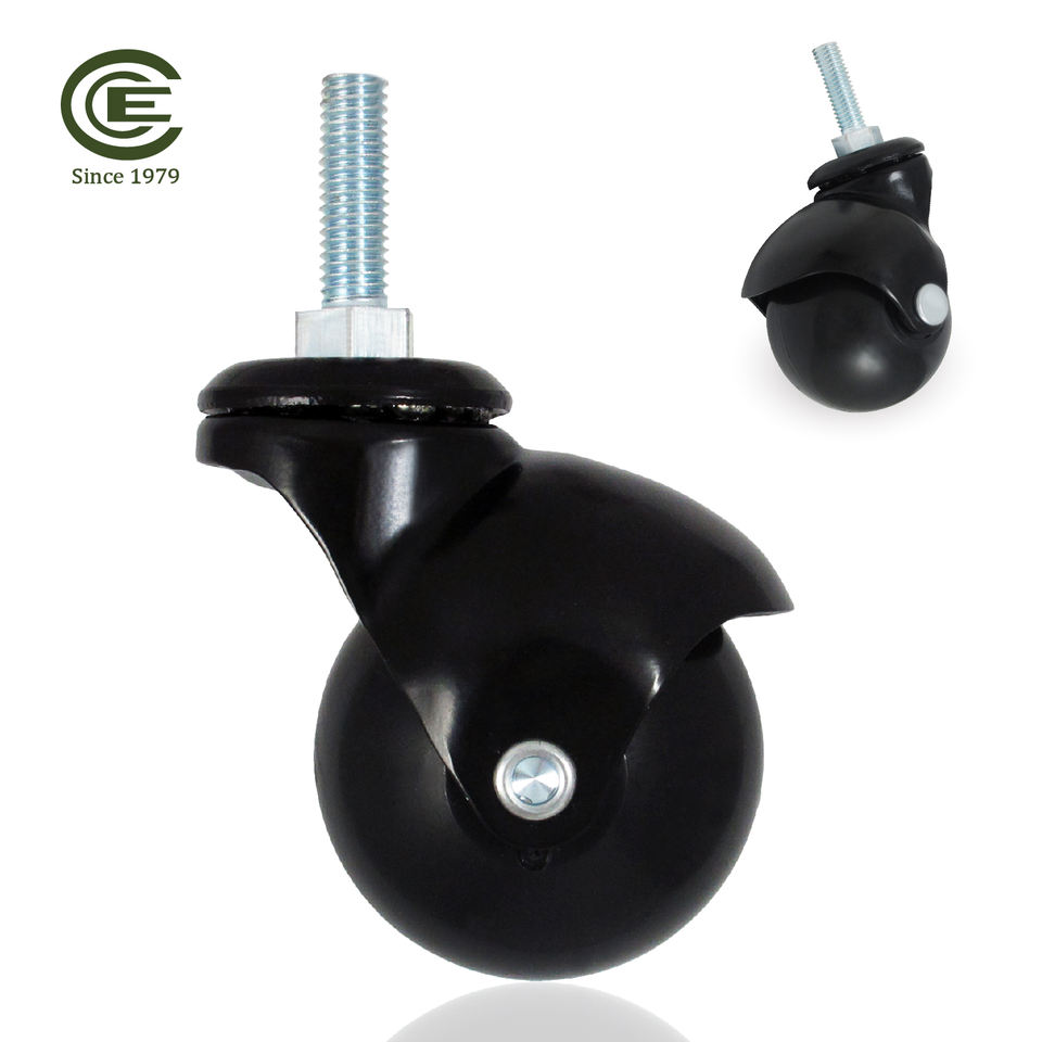 Product Name:1.5 Inch Black PP Ball Swivel Caster with 5/16" x 25mm Threaded Stem