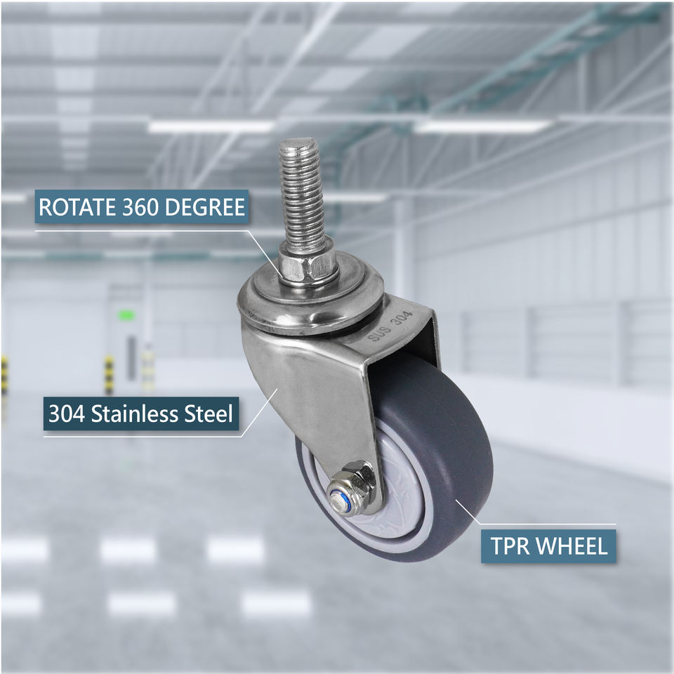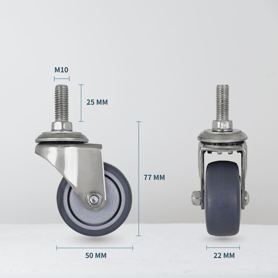Product name:2 Inch Stainless Steel Wheel Stem M10 TPR Rubber Swivel Casters