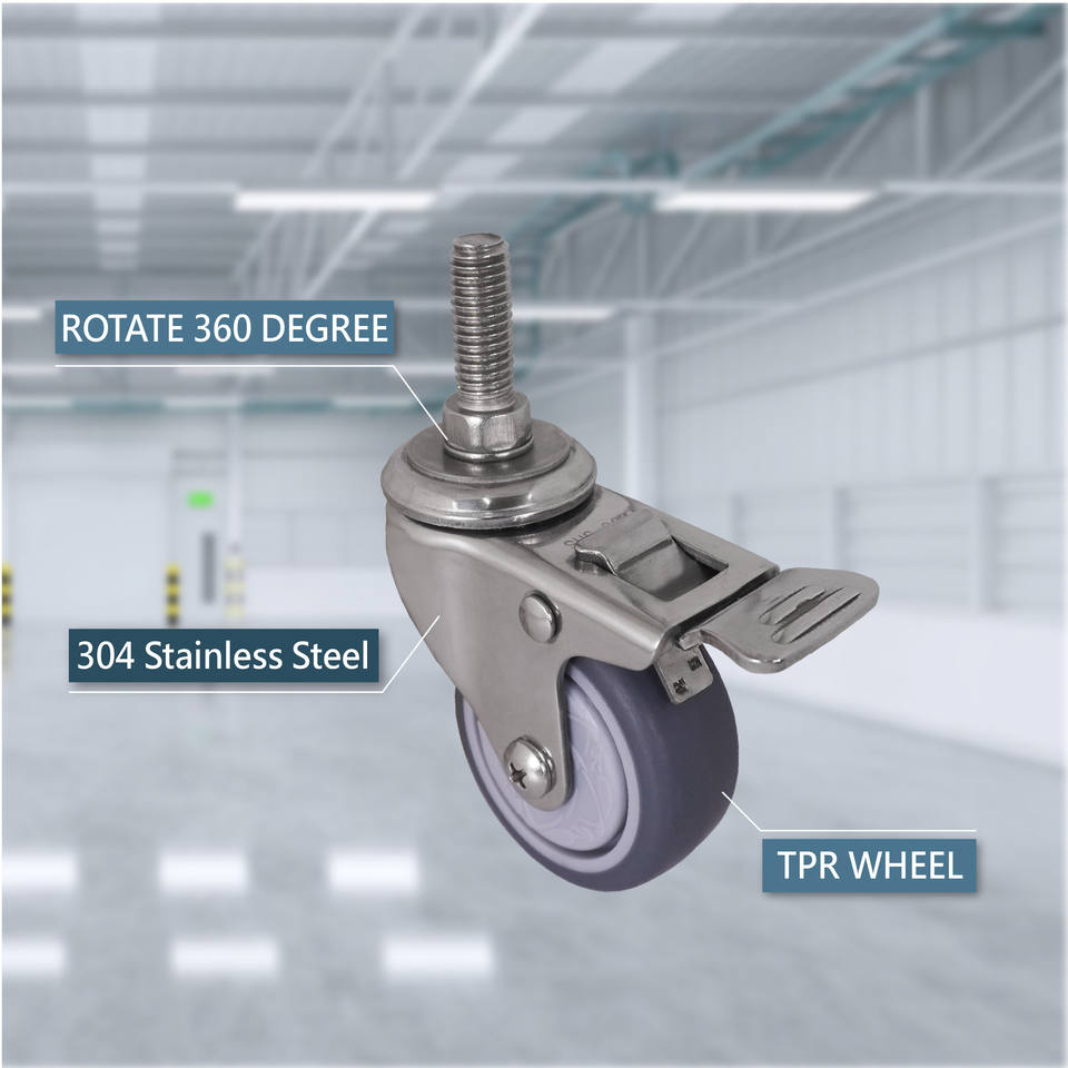 2 Inch Stainless Steel Wheel Stem M10 TPR Rubber Caster with Brake