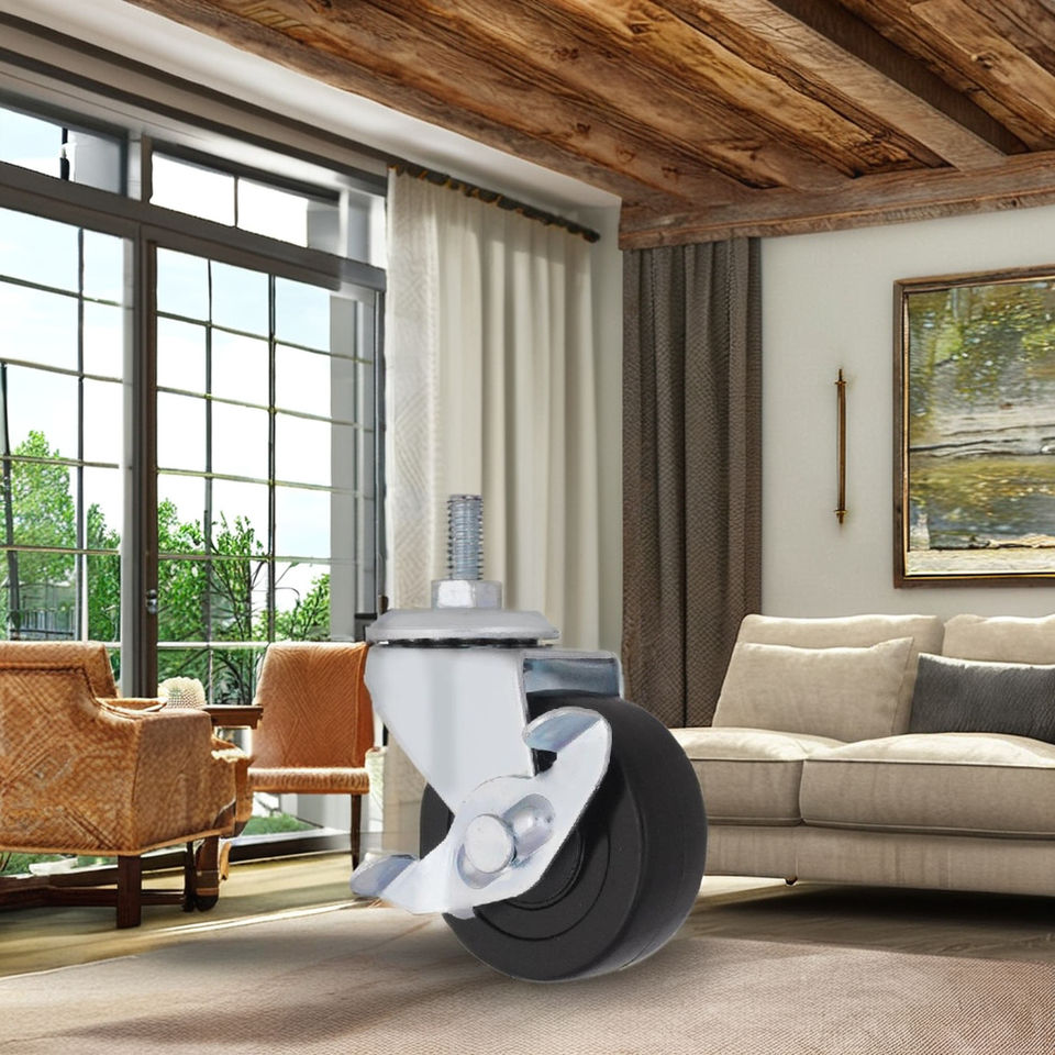 2 Inch Stem Caster Wheels with Brake 1/4" PVC Wheel for Furniture