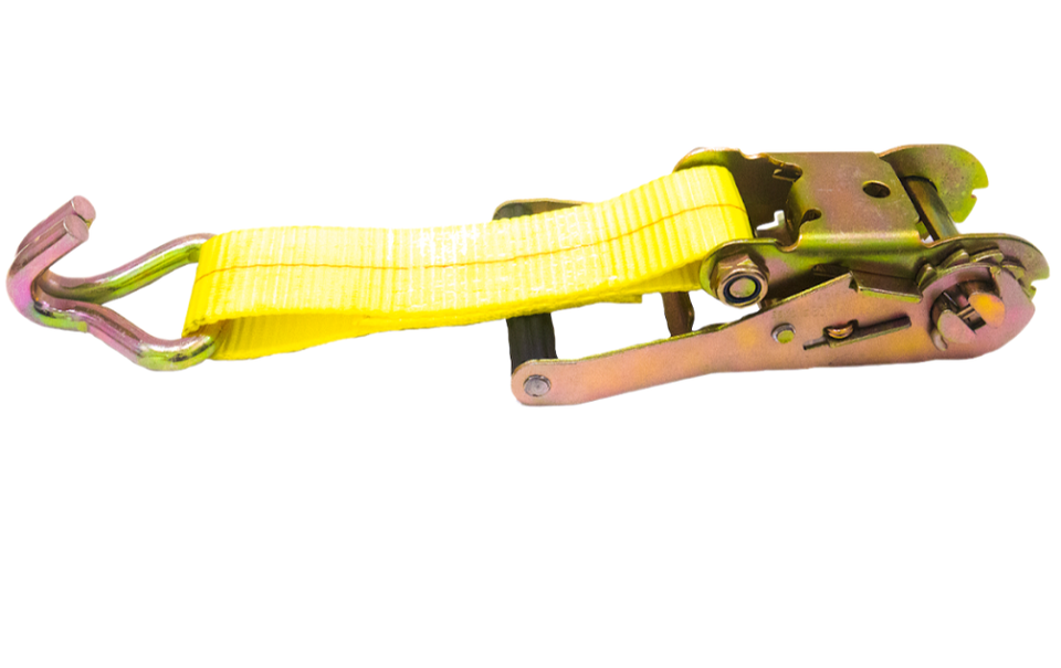 2 Inch Yellow Ratchet Strap Polyester Belt, Metal Buckle With J Hooks, Tension Strap Efficient for Salvage Car & Cargo Lashing