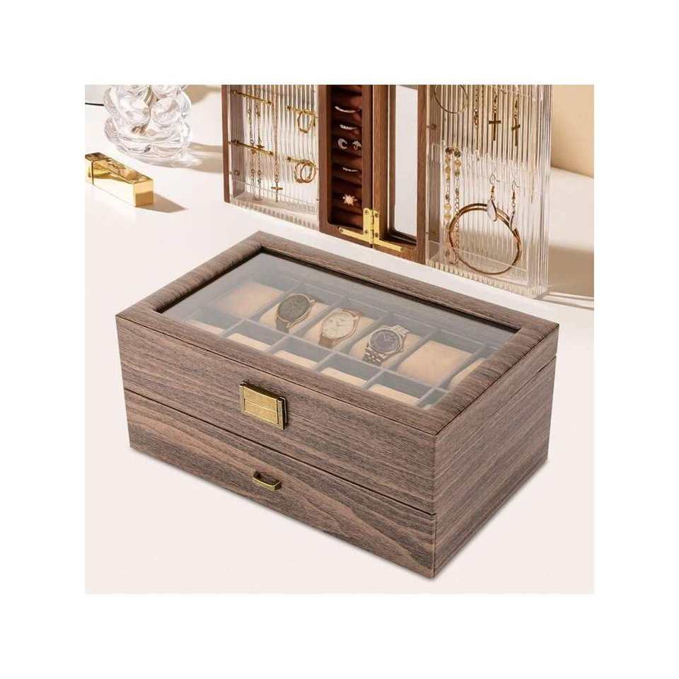 2-Layer 24-Slot Watch Box Organizer Men's & Women's Watch Case Display Drawer Watch Holder Storage for Home or Travel