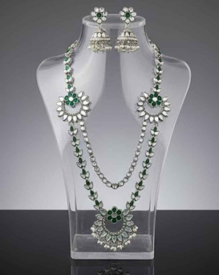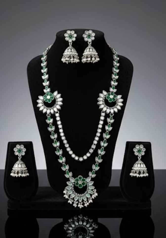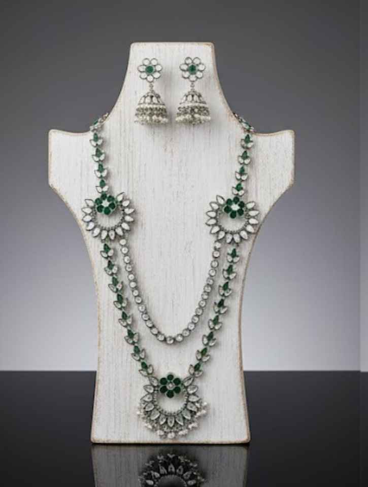 2 Layer Oxidised Silver Long Necklace Set Fancy Antique Design Elegant Traditional Indian Ethnic Party Wear Temple Jewellery