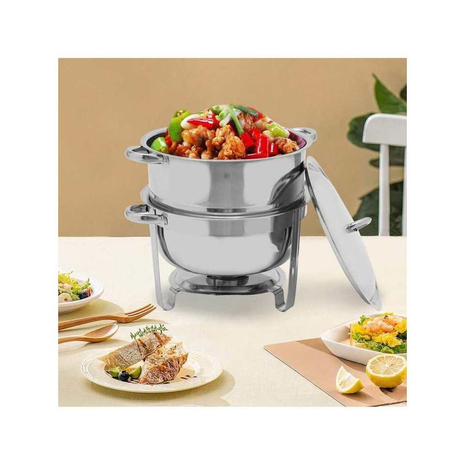 2-Layer Round Stainless Steel Chafing Dish 13.5L Soup Pot Food Warmer 14.2 Qt Full-Size Serving Tray for Hot Pot Serving