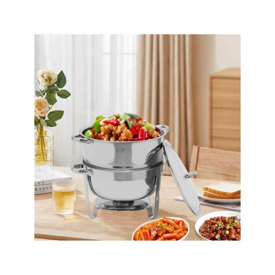 2-Layer Round Stainless Steel Chafing Dish 13.5L Soup Pot Food Warmer 14.2 Qt Full-Size Serving Trays Hot Pot Serving