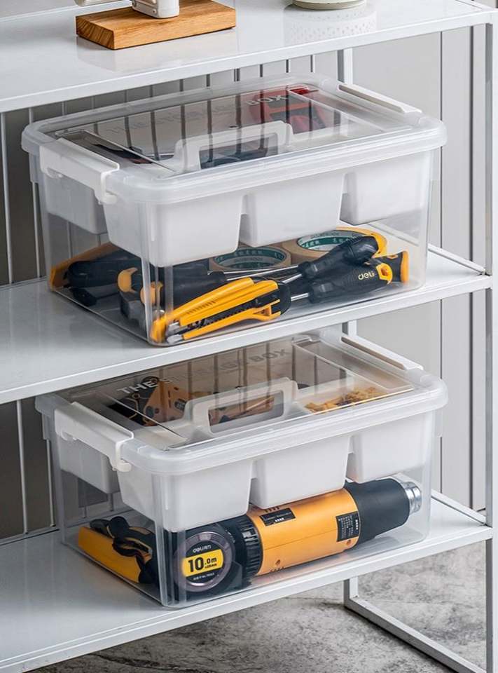 2 Layer Stackable Tool Box Plastic Storage Box Compartment Storage Bins Organizer Desktop Sundries Organizer Heavy Duty