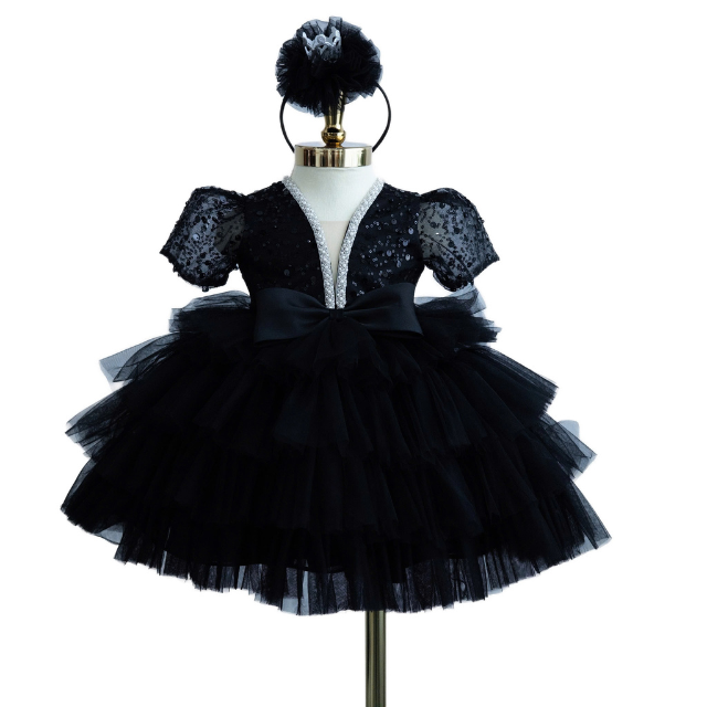 Product Name:Short Dress - Sequin Dress With 4-Tiered Flared Skirt