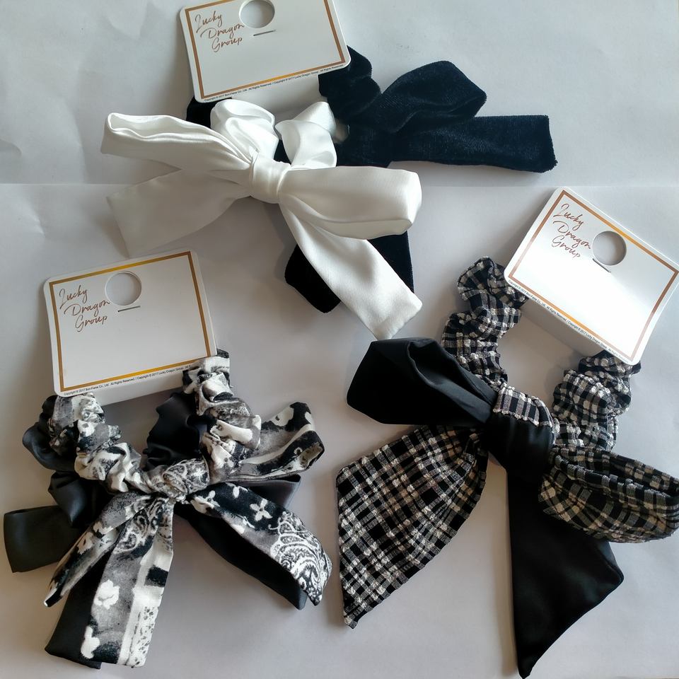 2 PCS Mixed Color Soft Hair Scrunchies With Tail Bow Ribbon Hair Accessories Hair Elastic Band Style Cute for Women and Kid