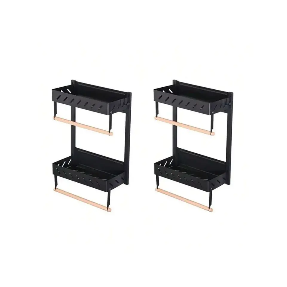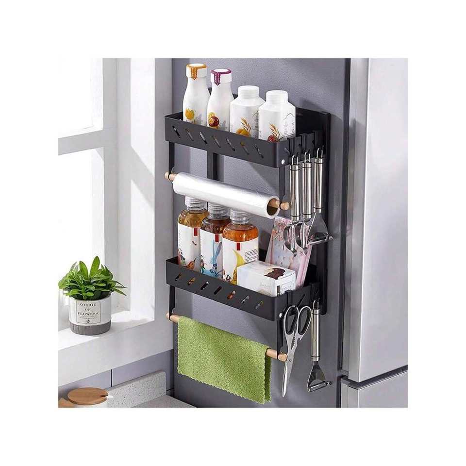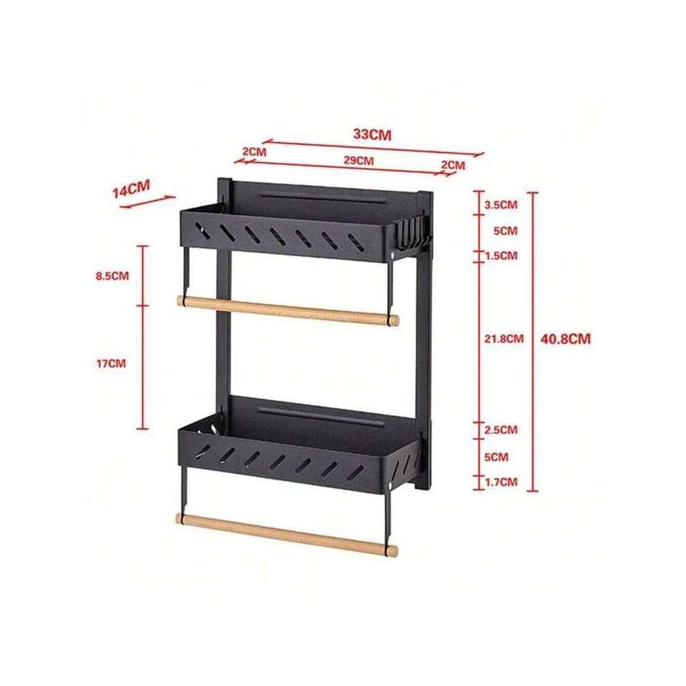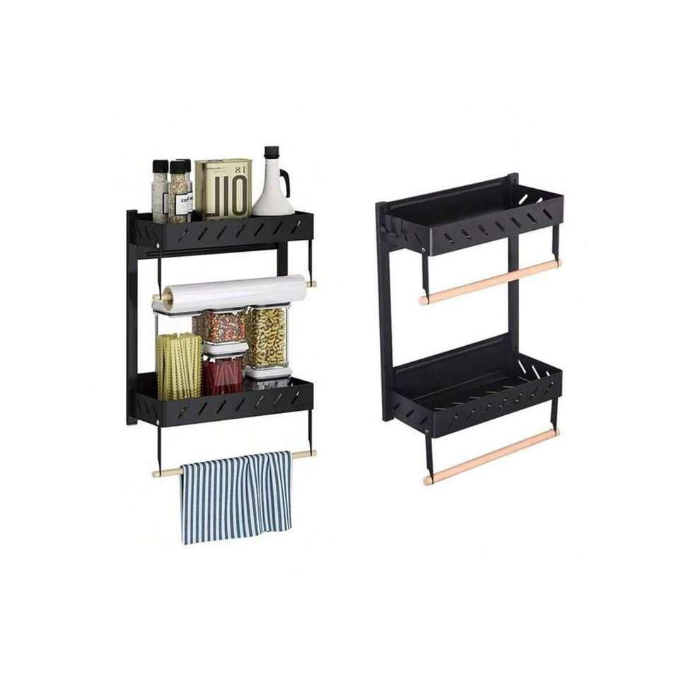 2-Pack 2-Tier Magnetic Spice Rack for Refrigerator Paper Towel Holder Kitchen Organization Multi-Use Magnet Shelf for Storage