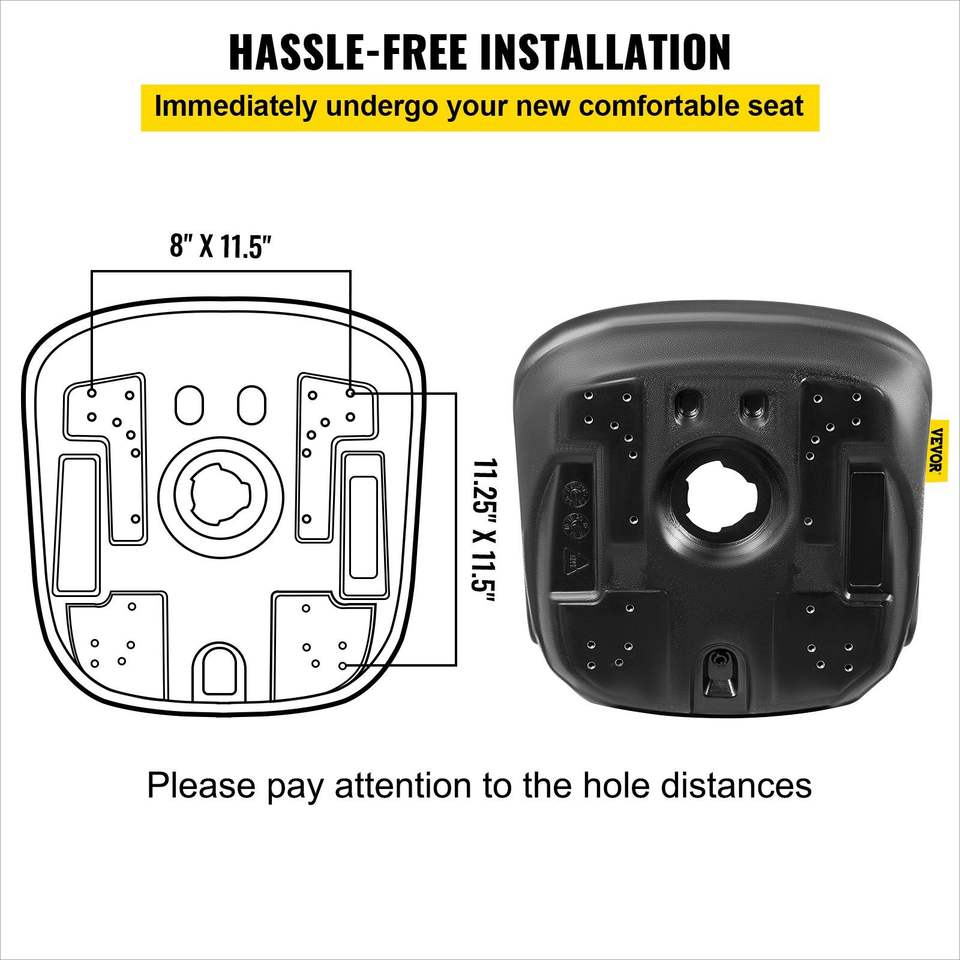 2 Pack Black Vinyl Tractor Seat Cushions Pillow Universal Compact High Back Mower Forklift Seat Replacement Central Drain Seat