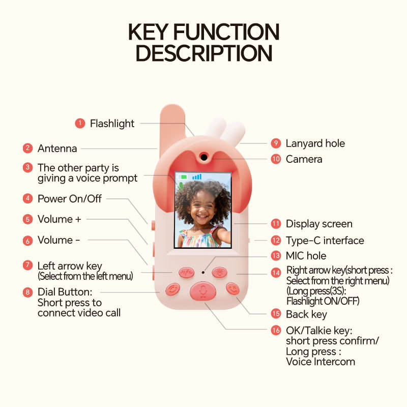 2 Pack Kids Video Walkie Talkie Gift HD Video Intercom Rechargeable Cartoon Voice Changer Voice Fonts One Click Call