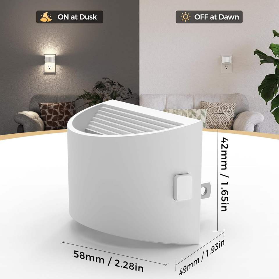 2 Pack LED Night Light with Dusk Dawn Sensor Plug Wall 3 Level Brightness Adjustable Plug-In Night Light