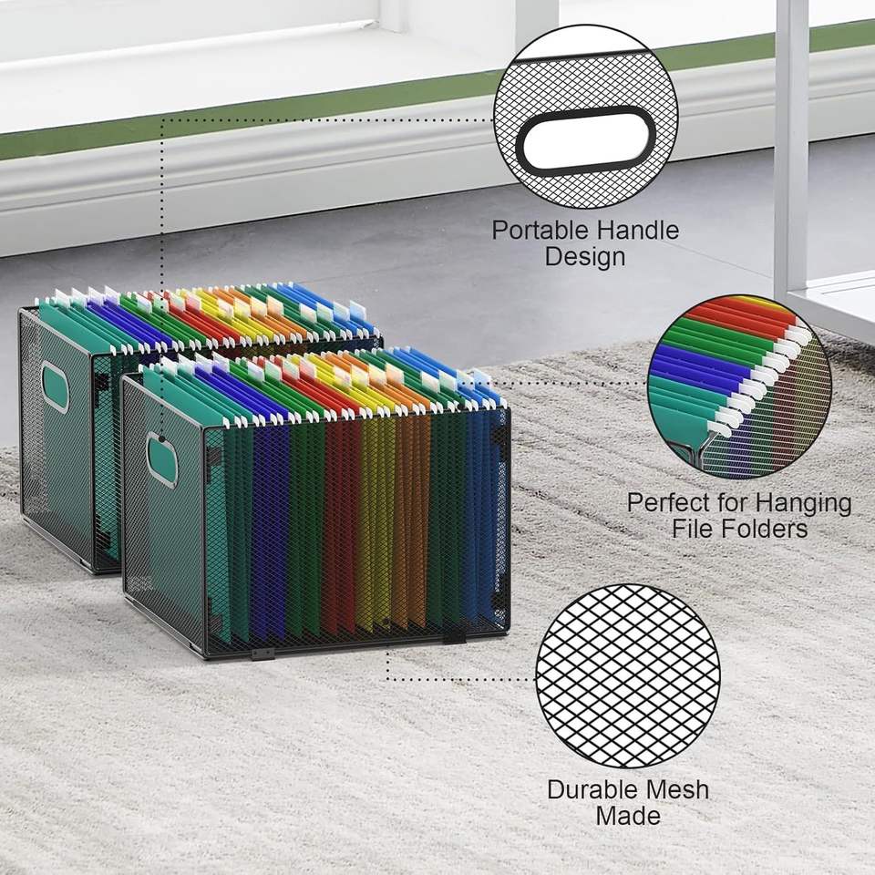 2 Pack Letter Size Hanging File Organizer Mesh File Folder Storage Boxes Hanging Cabinet Organizer for Paper & Media Items