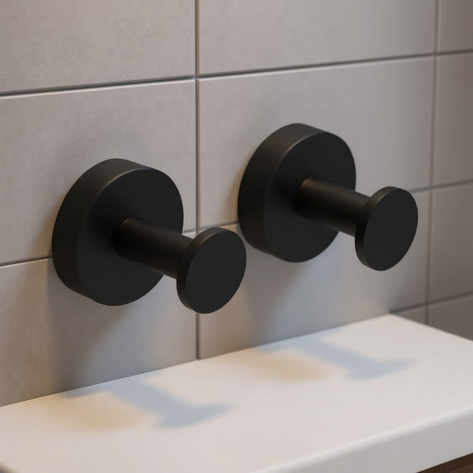 Matte Black Robe Hooks Round Base Wall Mounted 2 Pack For Bathroom Wardrobe Bedroom Furniture Hardware