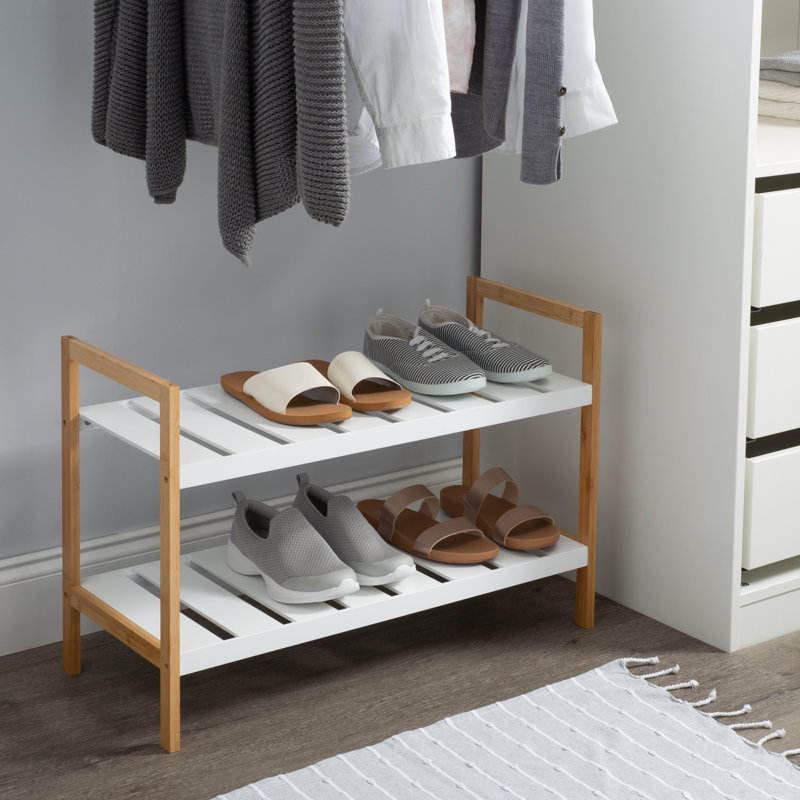 2 Pack Modern 2-Tier Bamboo Shoe Rack 12-Pair Stackable Organizer for Home Living Room Furniture