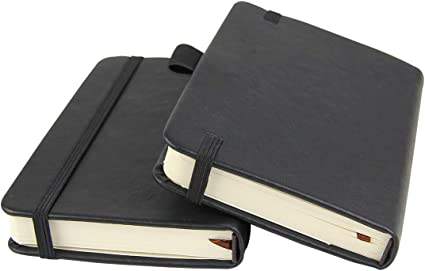 (2-Pack) Pocket Notebook 3.5" X 5.5", Small Hardcover Journal with Pen Holder, Inner Pockets, 100gsm Thick Ruled/Lined Paper, Bl