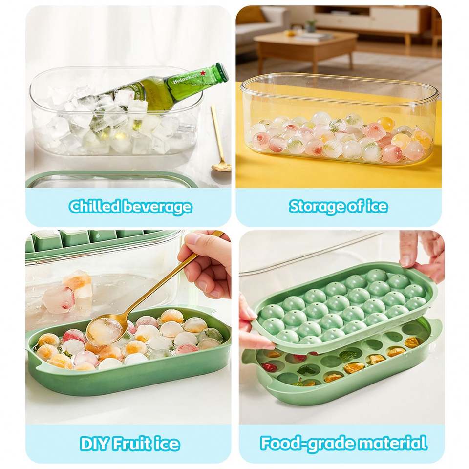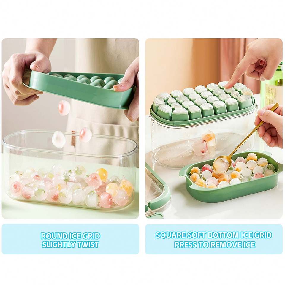 2 Pack Stackable Ice Cube Molds Tray with Handle Plastic Food Safe Sustainable Storage Container Easy Release Ice Molds Freezer