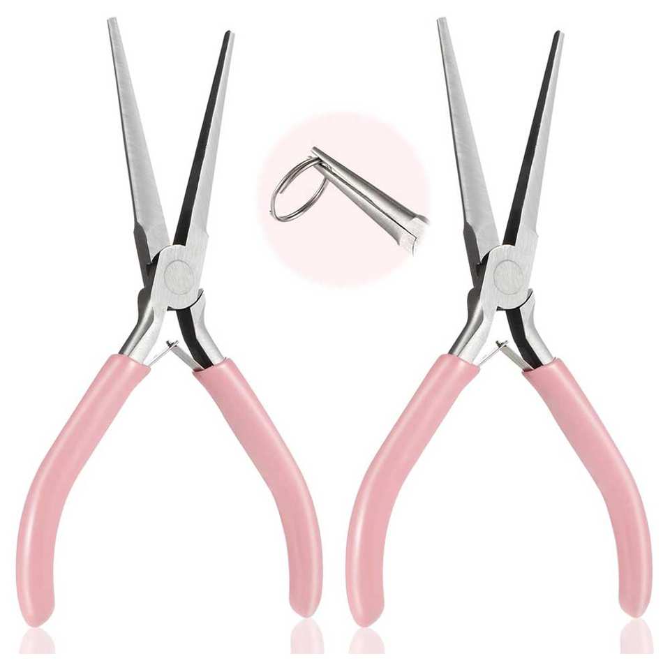 2 Pack Stainless Steel Needle Nose Pliers 6 Inch Flat & Small Wire Pliers for Jewelry Making Crafts