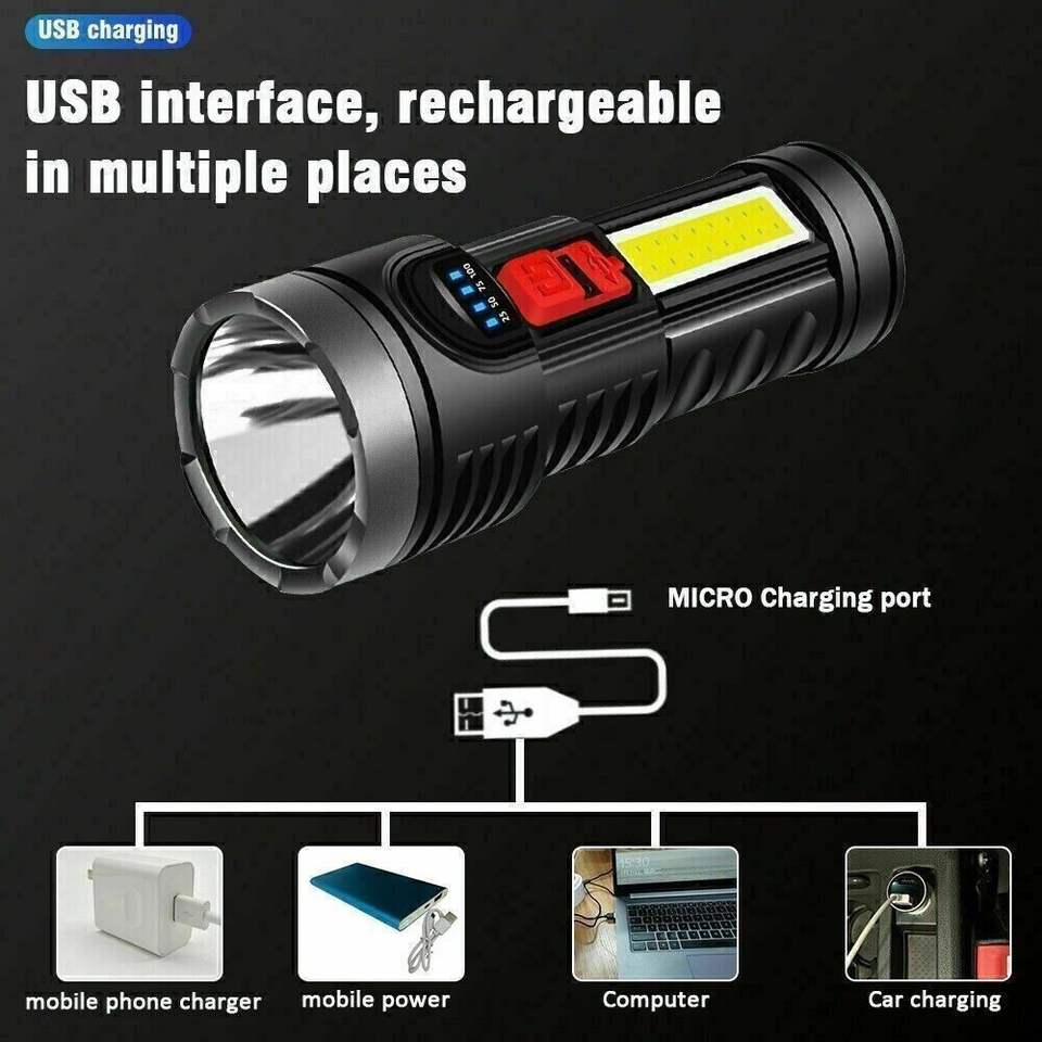 2 Pack USB Rechargeable LED Flashlight 4 Modes Camping Hiking Torch Work Light Self-Pickup at Logistics Only for USPS/TMEU