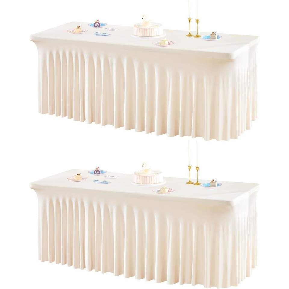2 Packs Ivory Rectangle Tablecloths Perfect Fit for 6 Foot Tables