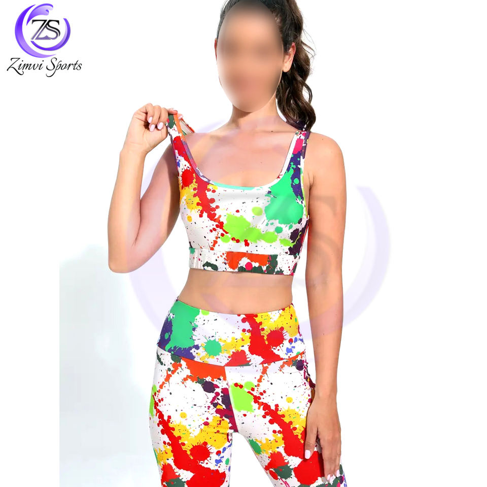 2 Pcs Graffiti Painting Fashion Sports Bra & High Waist Workout Running OEM ODM Service Leggings Outfit Women Yoga Sets