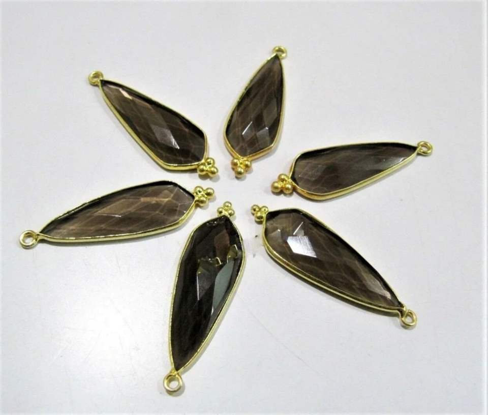 2pcs Set Natural Smoky Quartz Long Pear Shape 10x30mm Briolette Connectors High Brass Single Loop Jewelry Findings Components