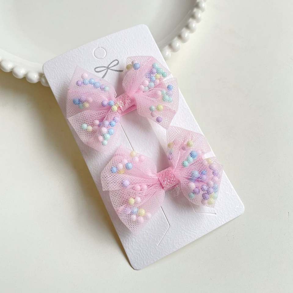2 Pcs/set Color Beads Bowknot Hairpin Clips Children's Hairpin Kid Hair Accessories Hair Clips for Baby Girls
