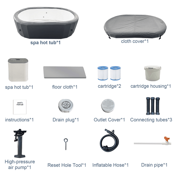 2 Person Portable Oval Inflatable Hot Tub with 180 Bubble Jets Cover Filter Cartridges Pump for Home Use