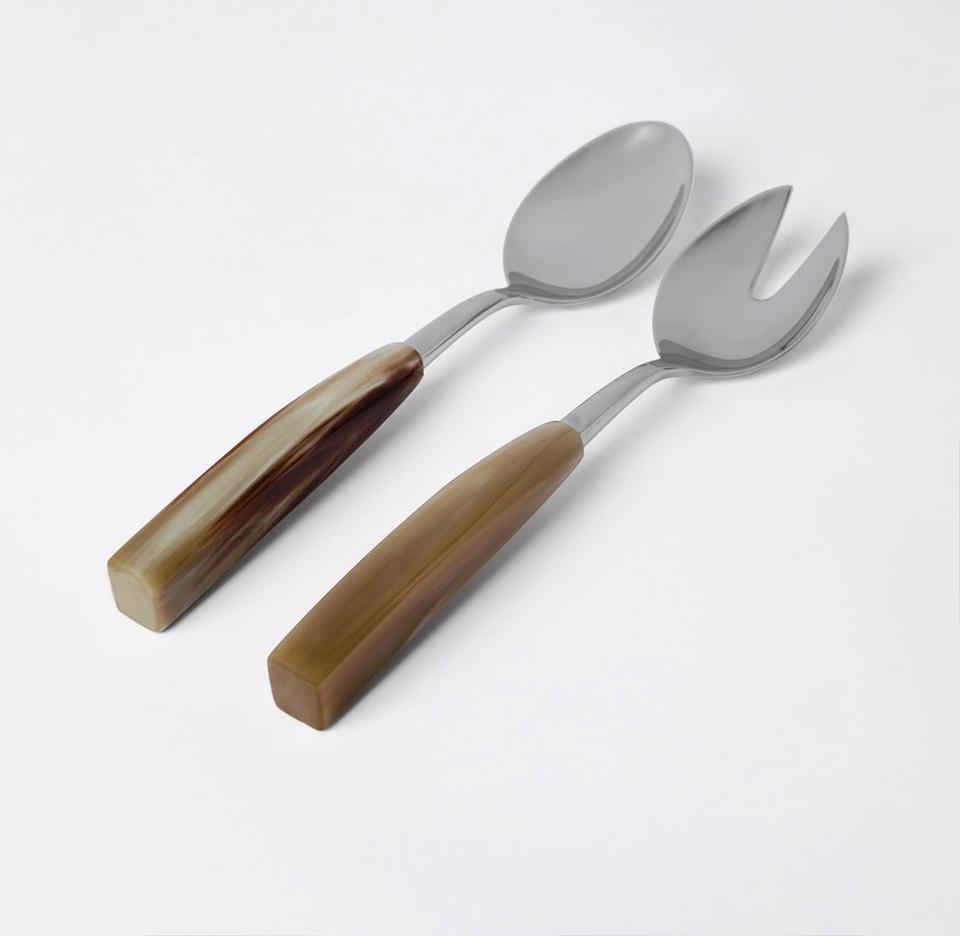 2-Piece Brown & Black Buffalo Horn Cutlery Set Unique Luxury Light Horn Serving Tools for Salads Top Selling in India