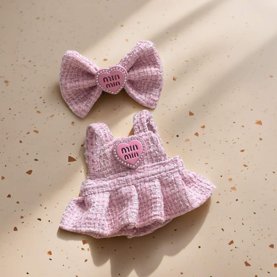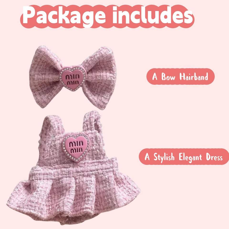 2-Piece Cute Replacement Outfits 17cm for Dolls Pink Dress Bow Hairband Set Dressed Glass Plush Material No