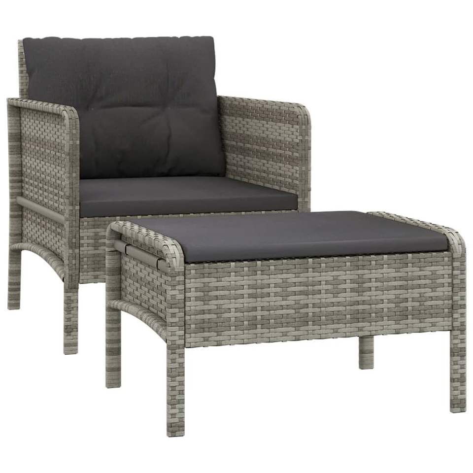 2-Piece Gray Poly Rattan Patio Lounge Set with Cushions Garden Sets