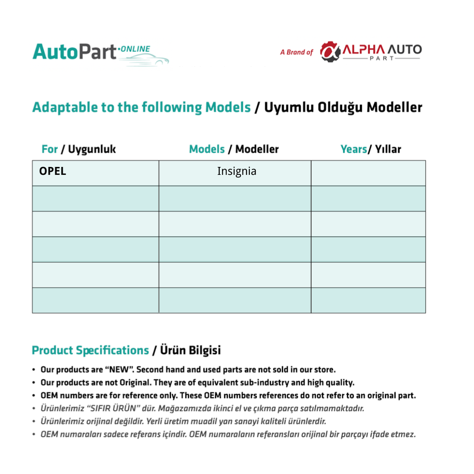 2-Piece Rear Door Sunshade Curtain Holder for Opel Insignia ( Shipping From Turkey Manufacturer ) Product Code: SR2278-1