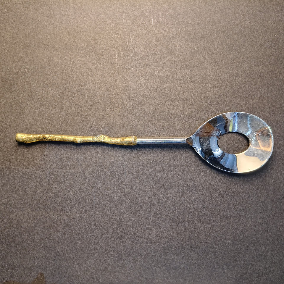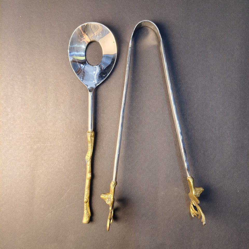 2-Piece Rustic Golden Twig Handle Salad Serving Set Stainless Steel Serving Spoon and Matching Salad Tongs for Farmhouse Decor