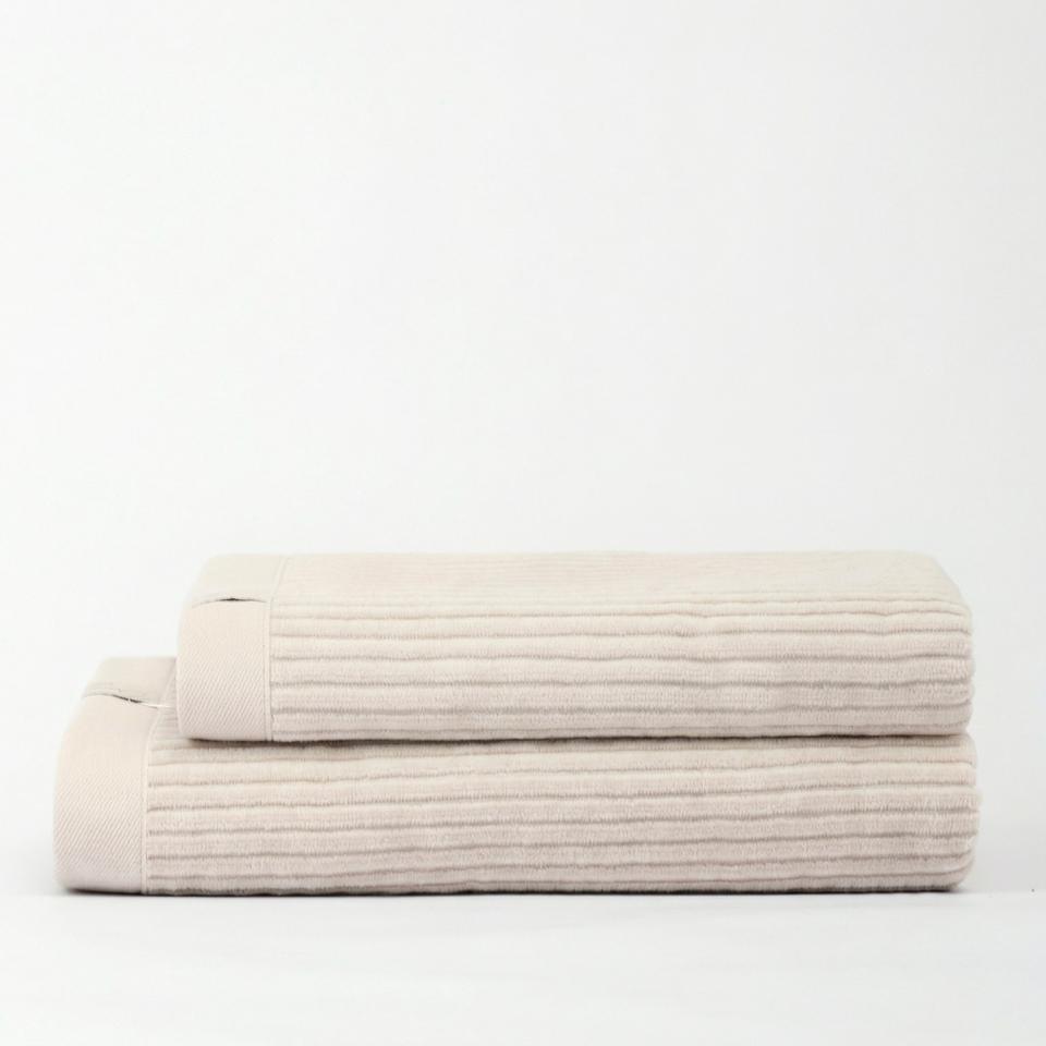 2 Piece Santini Cotton Towel Set Featuring Velour Cut Stripes Soft Touch Smooth Feel and Reliable Absorbency
