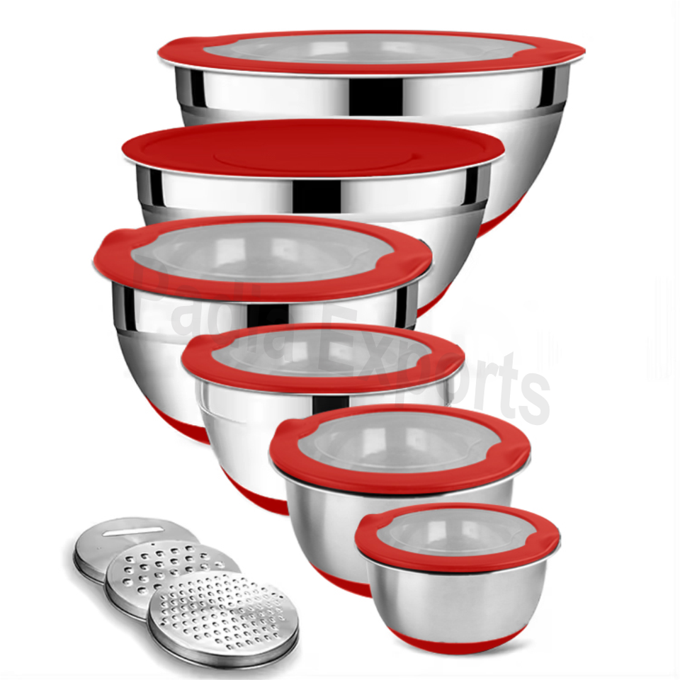 2-Piece Stainless Steel Mixing Bowls Set with Transparent Lid and Grater Dishwasher Safe Light Weight