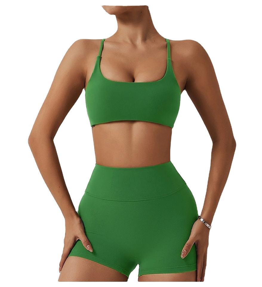 2 Piece Yoga Short Set Female Workout Clothing Gym Fitness Sets Women Straps Bra High Waist Shorts Set