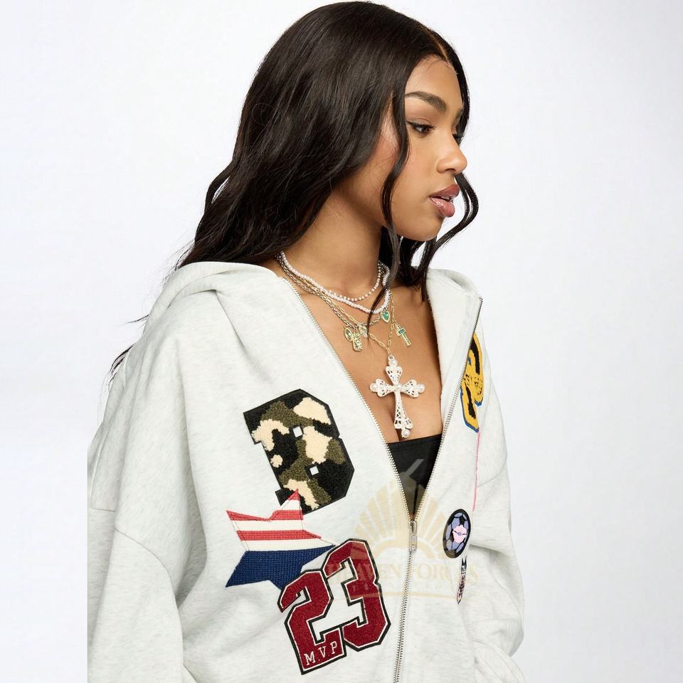 2 Pieces Women's Casual Workout Sweatsuits Solid Pattern Zipper Hooded Embroidery Logo Printing Baggy Loose Fit Pants 100%