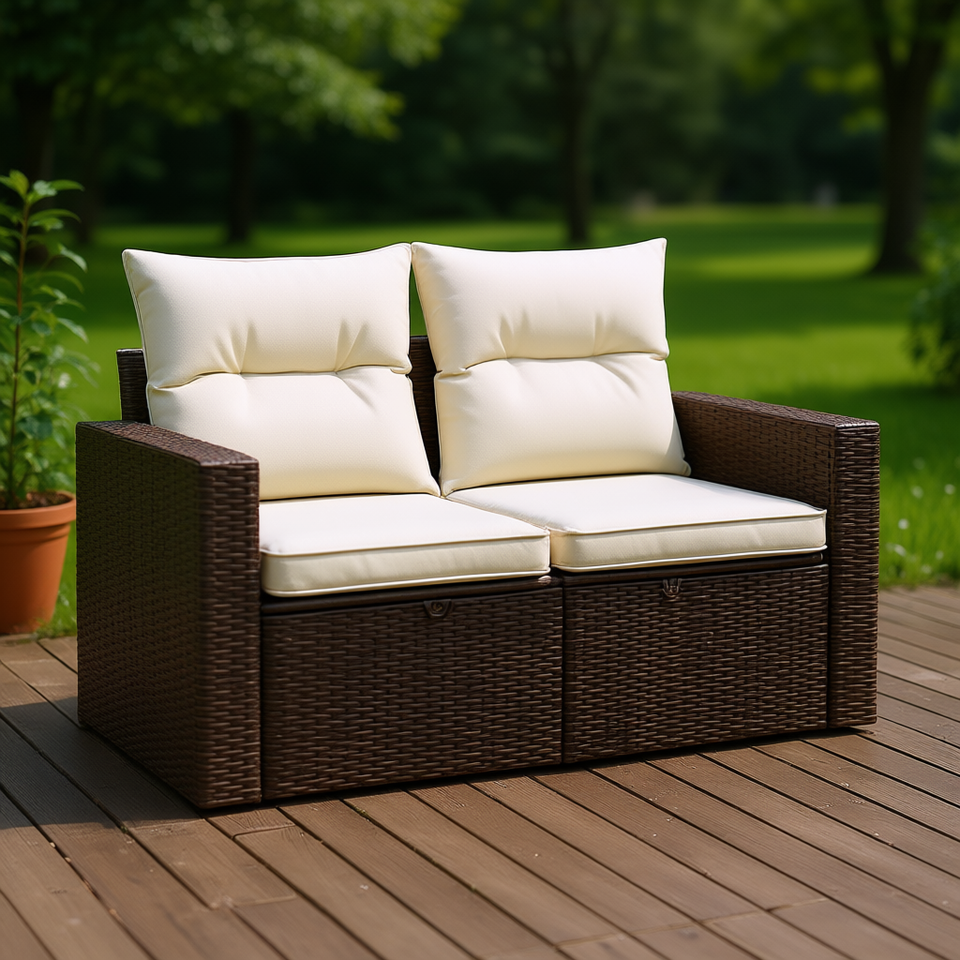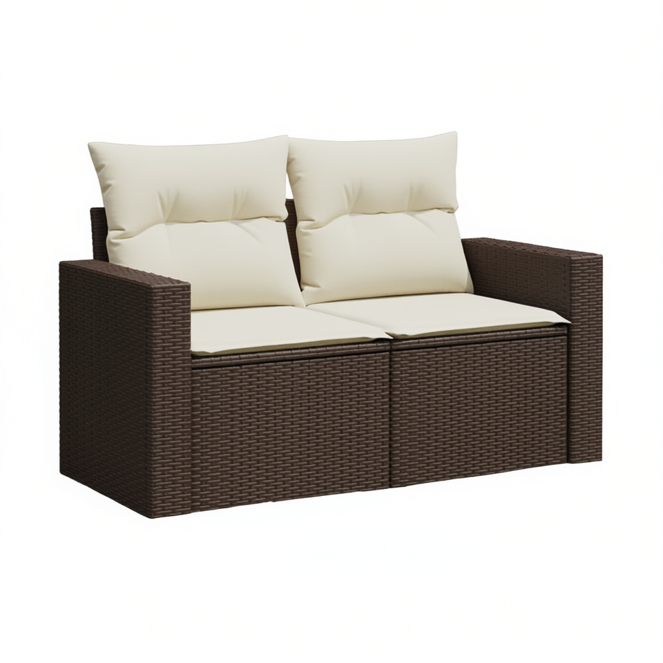 2 Seater Garden Sofa In Brown Poly Rattan With Adjustable Design For Outdoor Use