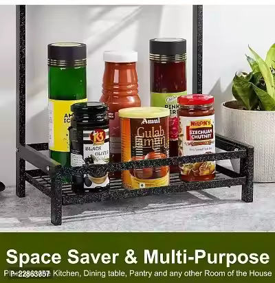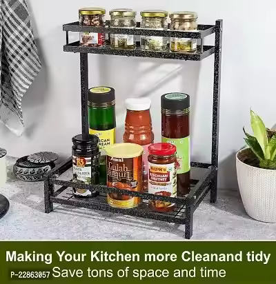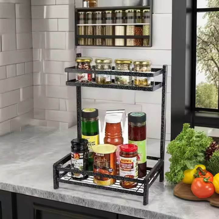 2-Tier Black Iron Eco-Friendly Non-Folding Spice Rack Customizable Organizer Kitchen Countertop Storage Sturdy Freestanding