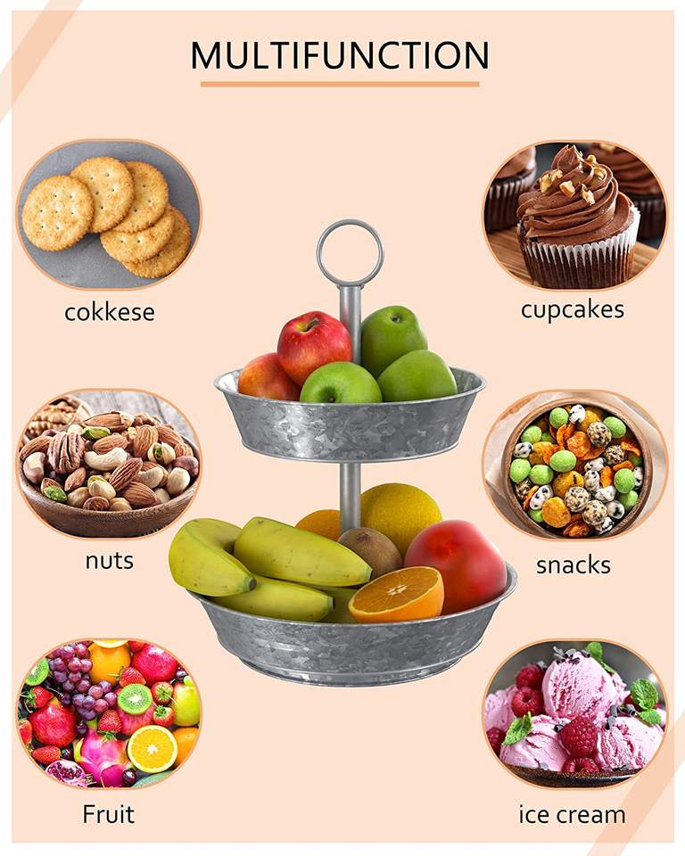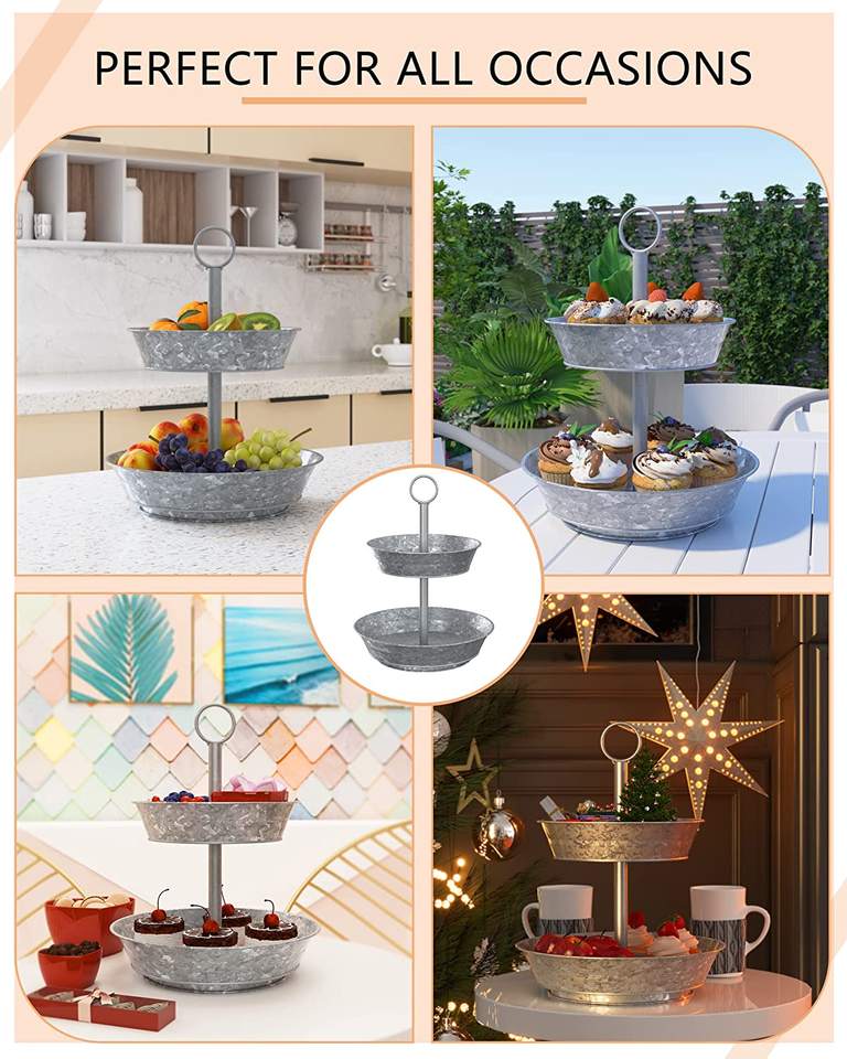2 Tier Cake Stand in Galvanized Silver Metal With Standard Design Perfect for Hotel Ware Kitchenware and Elegant Dessert Display