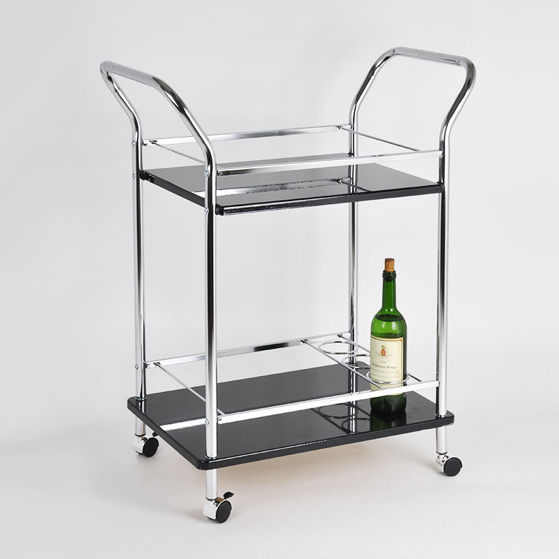 2-Tier Chrome Plated Oval Tube Design Four-Wheel Roll Container Glass Storage Serving Trolley OEM