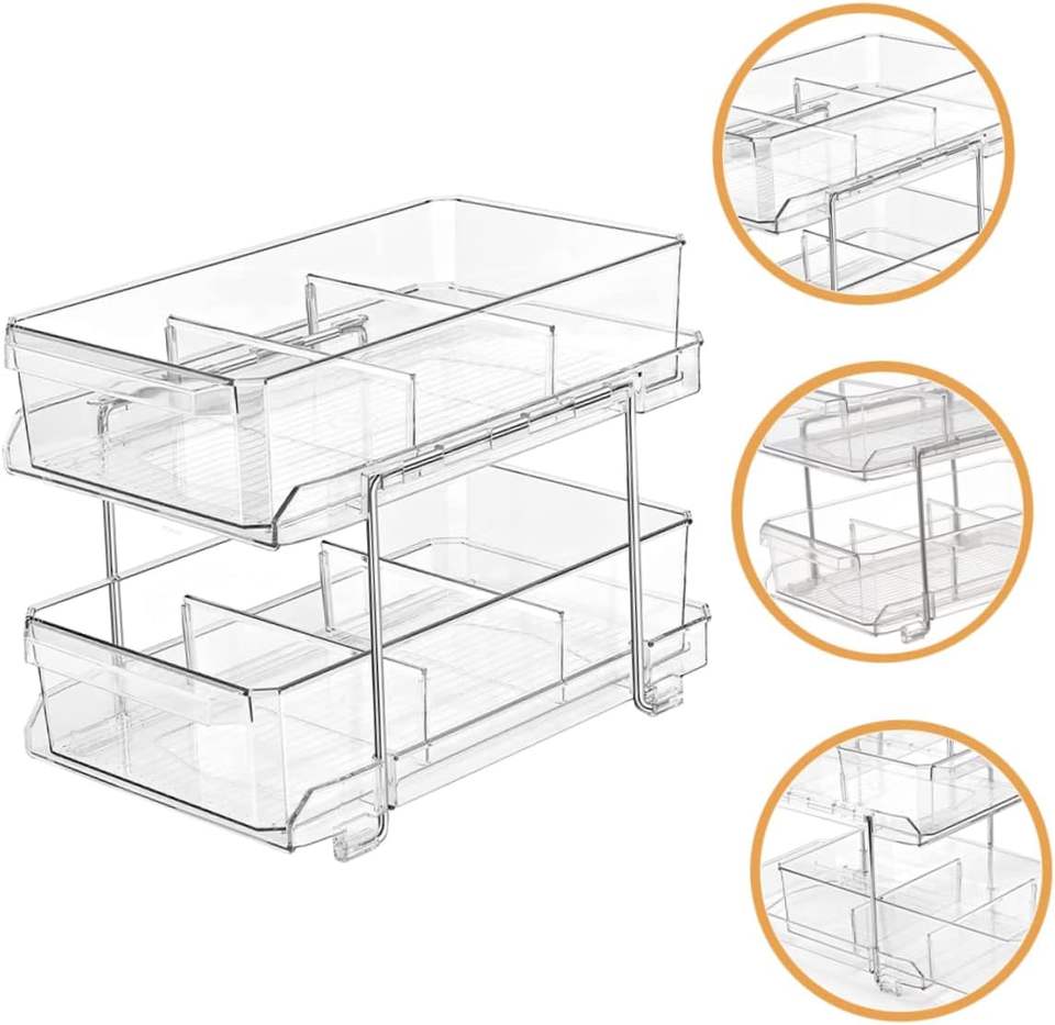 2-Tier Clear with Removable Dividers Slide-Out Plastic Storage Bins Bathroom Under Sink Organizer Kitchen Fridge Bins Wholesale