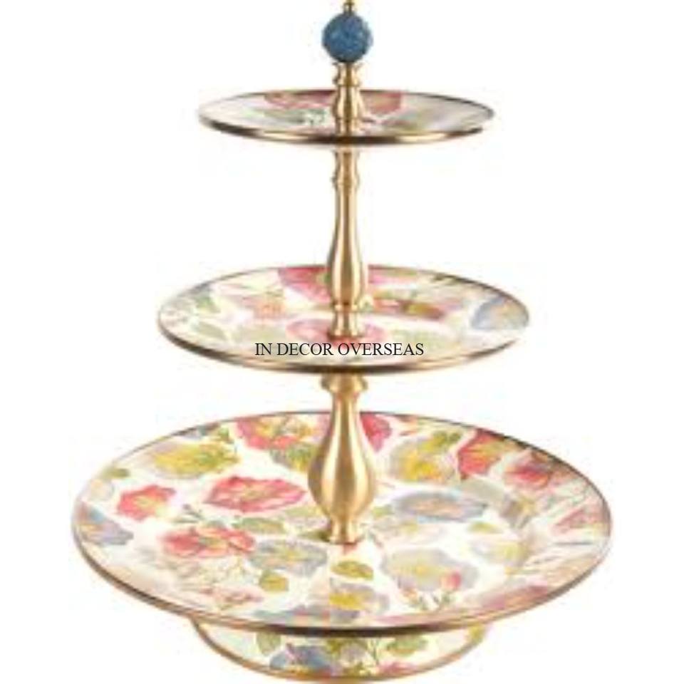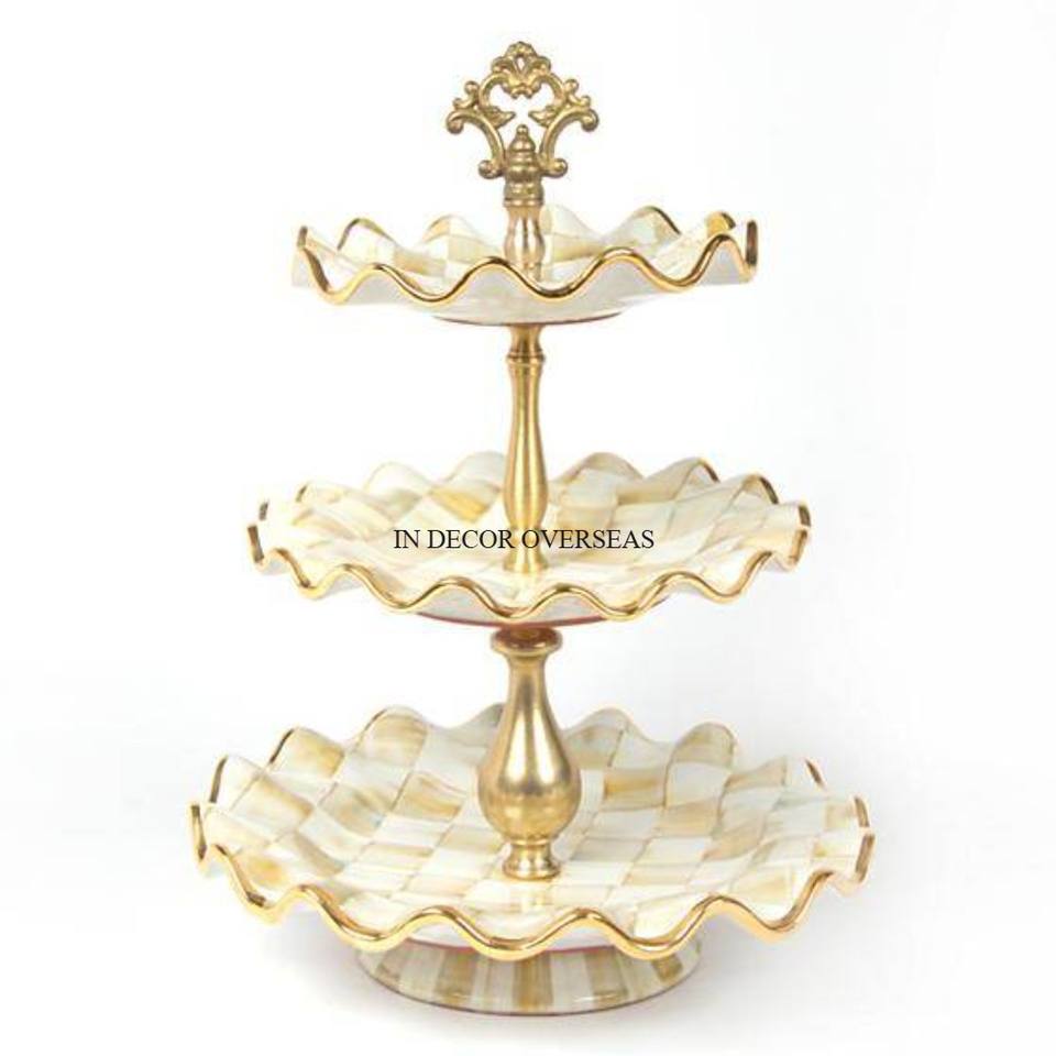 2 Tier Exclusive Quality Metal Made Black And White Color Blocks Designer Enamel Finished Bowls With Gold Plated Stand Supplies