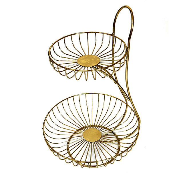 2-Tier Gold Iron Metal Countertop Fruit & Vegetable Organizer MAB Wire Basket for Dining Table/Kitchen