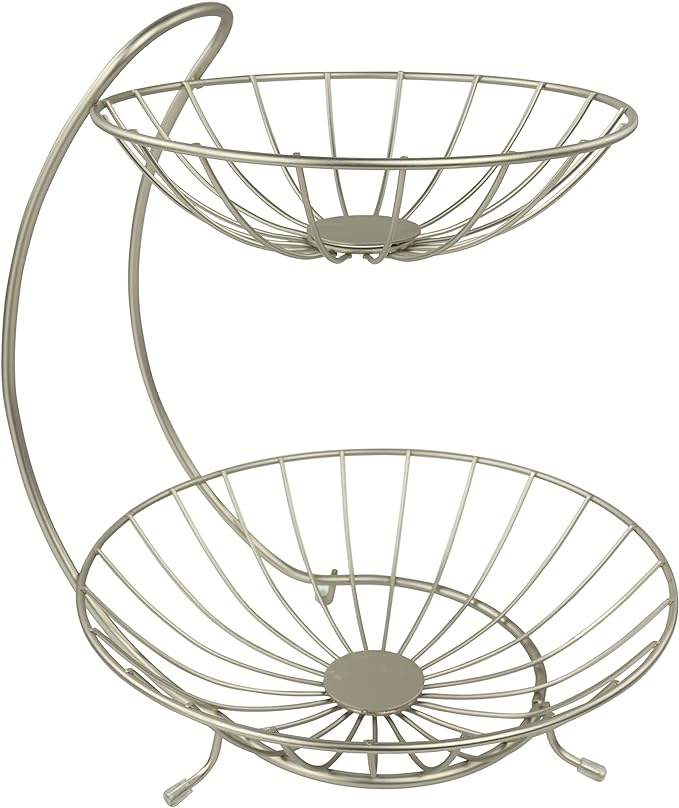 2 Tier Hanging Fruit Basket, Kitchen Vegetable Produce Storage Basket, Chain Wire Plants Organizer Basket