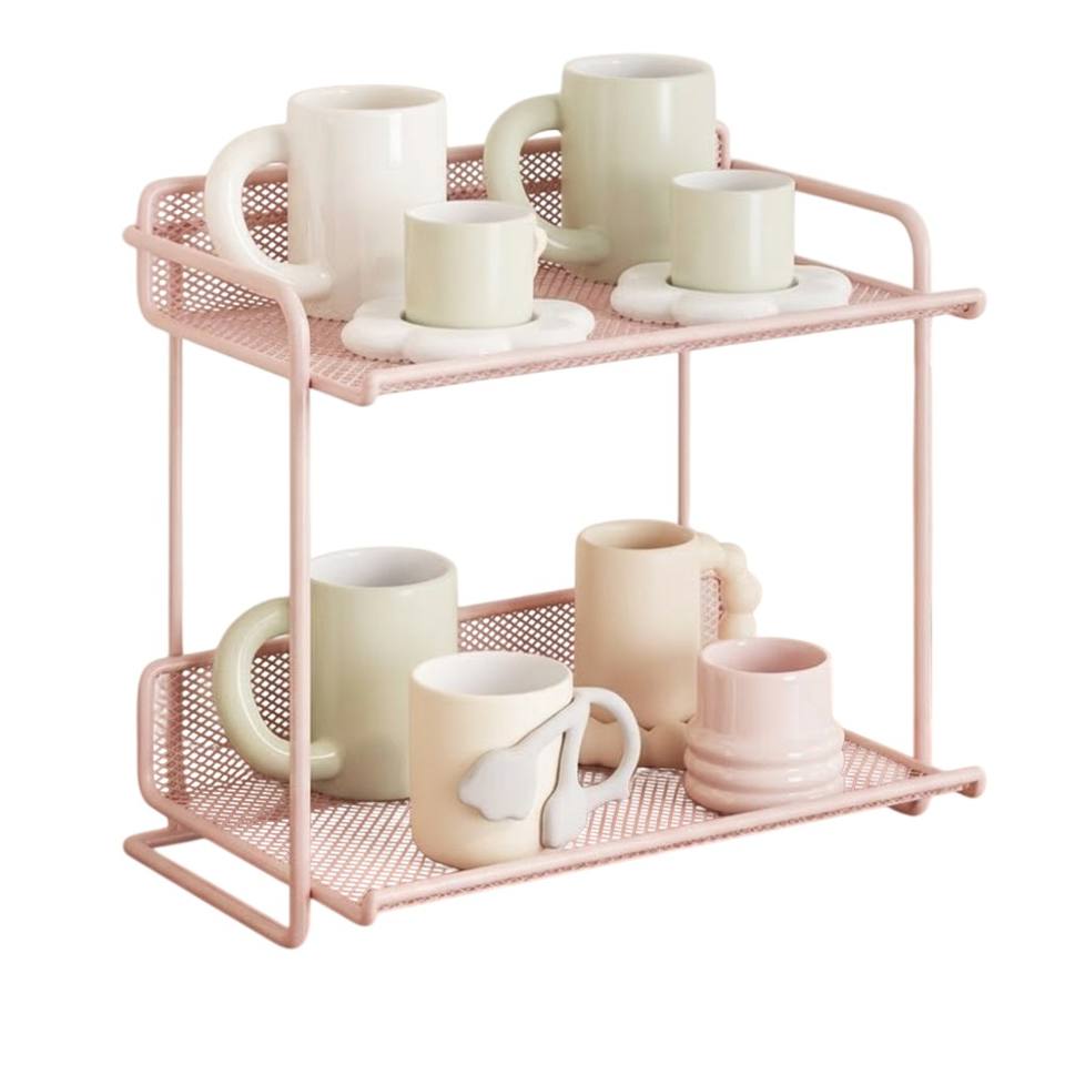 2 Tier Kitchen Cup Drying Rack With Drain Tray Gold Metal Mug Holder Countertop Organizer Storage Rack For Water Glasses