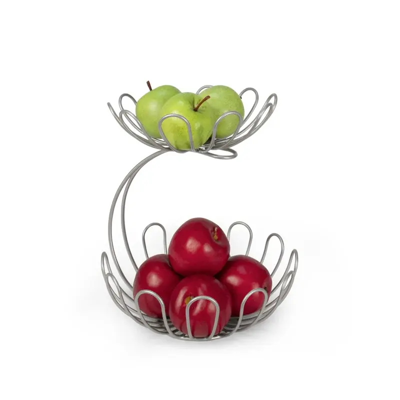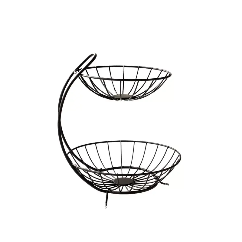 2-Tier Metal Fruit Basket with Banana Hanger, Detachable Countertop Fruit Stand for Kitchen Dining Table and Home Organization