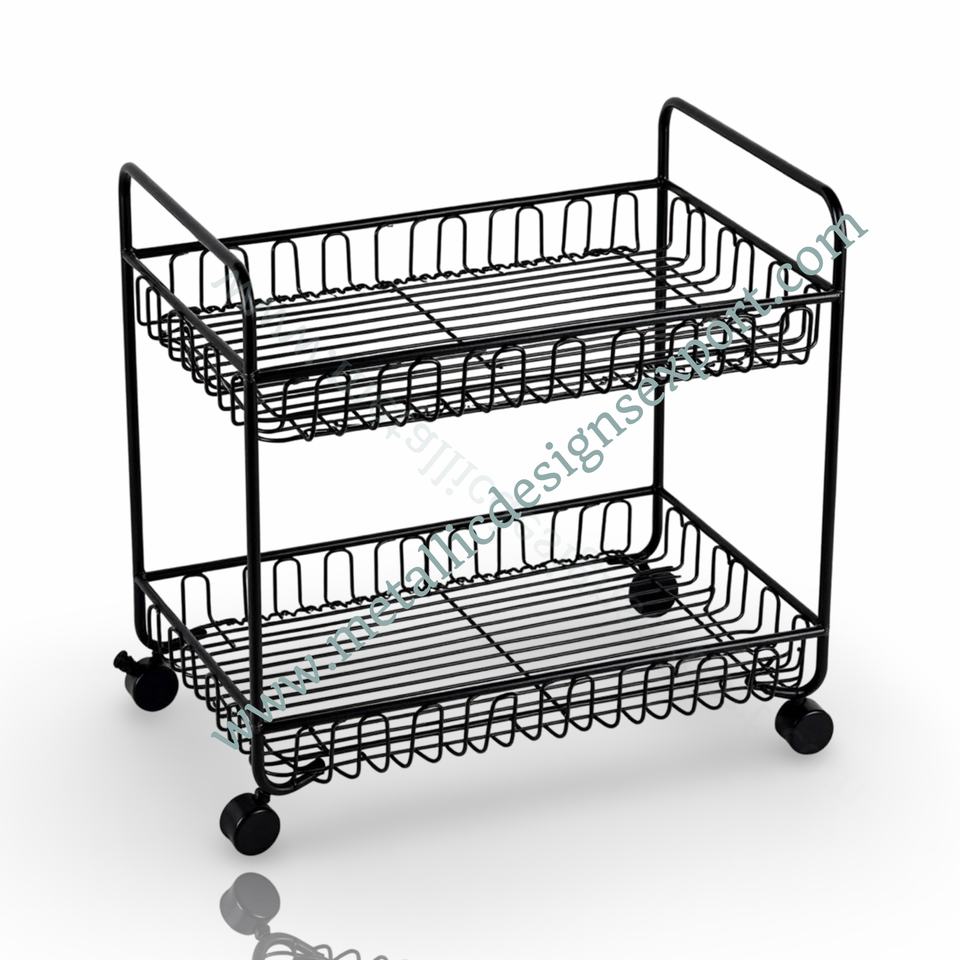 2-Tier Metal Storage Cart with Wheels, Stackable Wire Basket Organizer for Kitchen, Pantry, or Laundry Room Use Glass Spice Rack