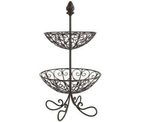 2 Tier Modern Farmhouse Style Metal Fruit Basket Crafted From High Grade Iron For Storing Fruits Bread And Vegetables