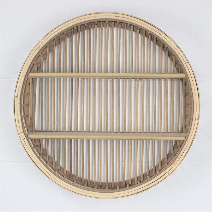 2-Tier Mounted Wood Wall Storage Unit 45CM Round Rattan Floating Shelf